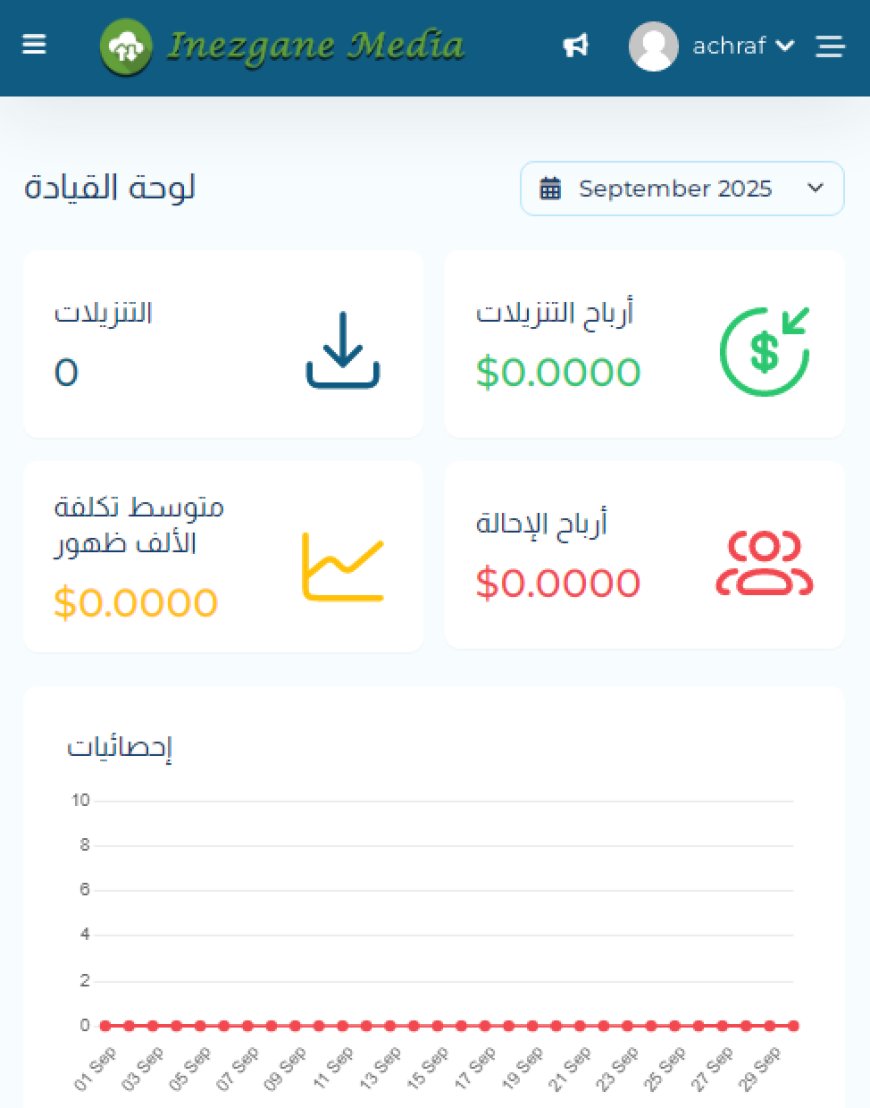 بعد الضغط على زر الإشتراك سيتم توجيهك للوحة القيادة مباشرة كما في الصورة التالية :